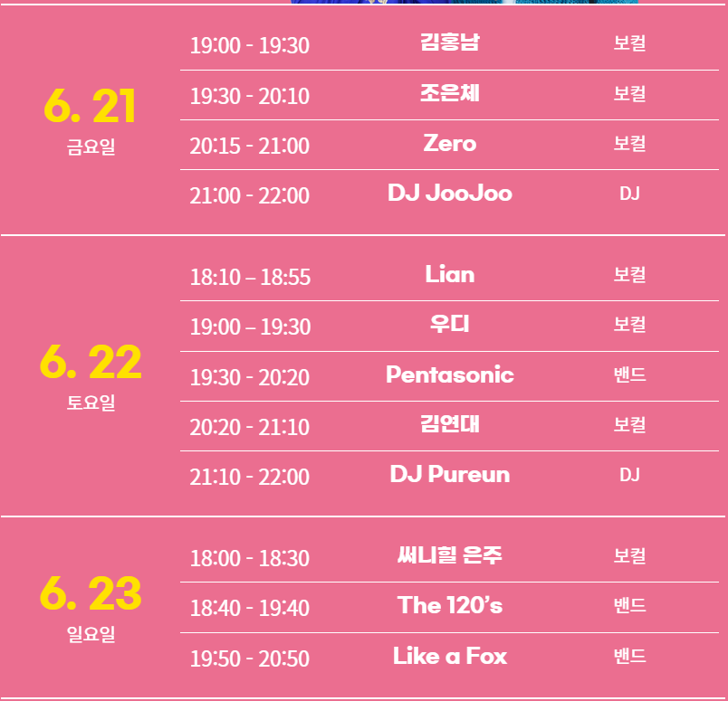 DJ, 가수들과 흥겹고 신나는 공연도 같이 즐기면 즐거움은 배가 되겠죠?