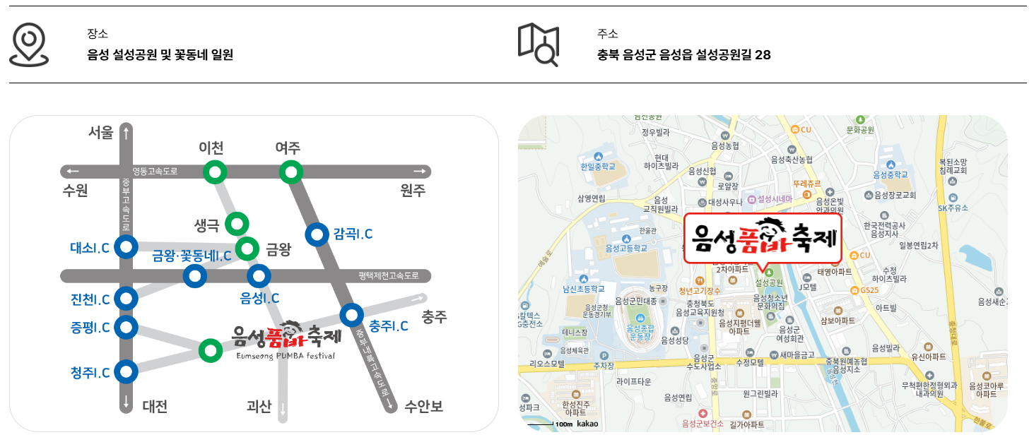 - 주차 및 교통: 설성공원 주변은 혼잡할 수 있으니 대중교통(음성역에서 택시로 약 10분)이나 셔틀버스를 이용하세요.