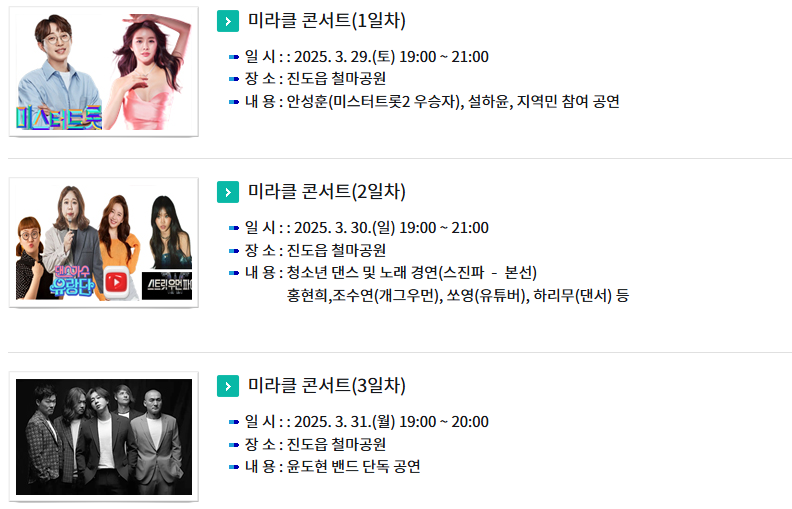 2025 진도 신비의 바닷길 축제, 공연 및 가수 정보